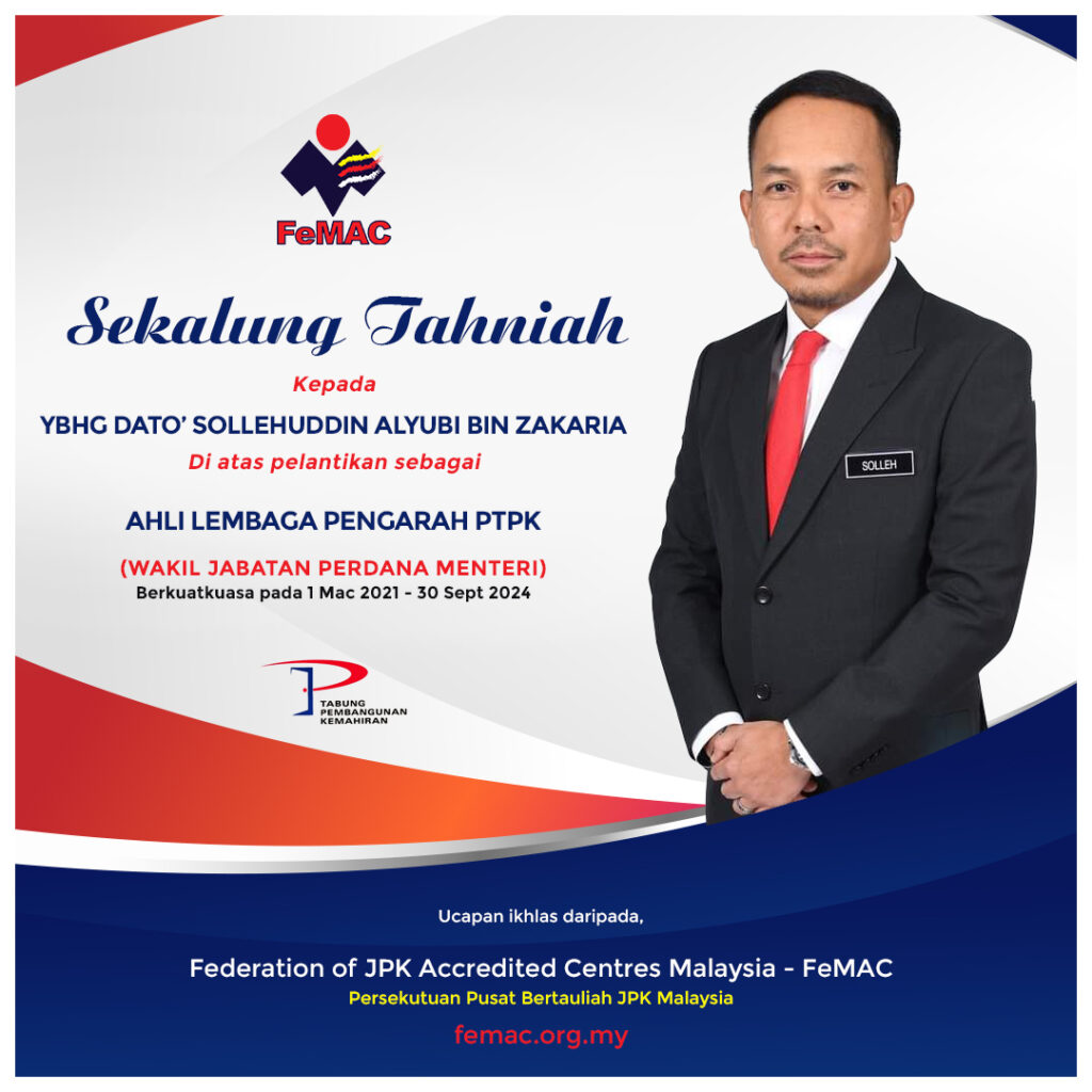Sekalung Tahniah kepada YbhgDato’ Sollehuddin Alyubi Bin Zakaria